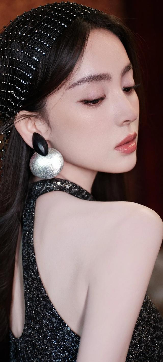 身穿闪耀亮片挂脖裙,高开叉设计大秀美腿,搭配复古网纱发箍、夸张金属耳饰,往那儿一站,就是老电影里走出的名伶既视感
